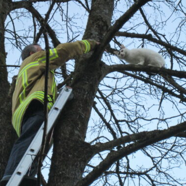 Die Feuerwehr Stadt Schongau rettete am 09.03.2015 gegen 17:15 Uhr eine Katze von einem Baum, auf dem sie bereits über 24 Stunden gesessen hatte.