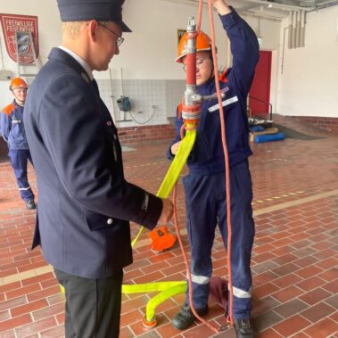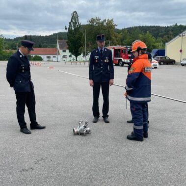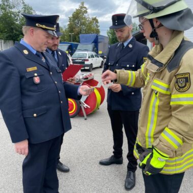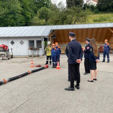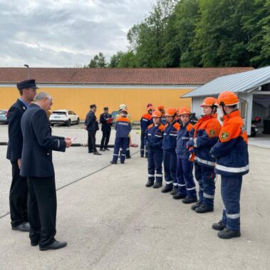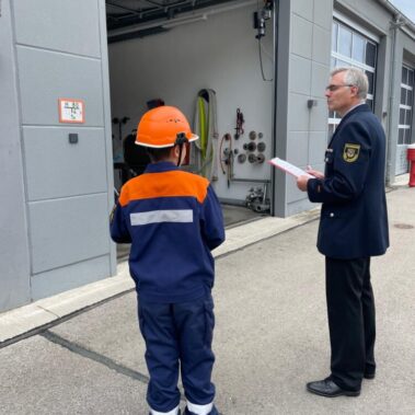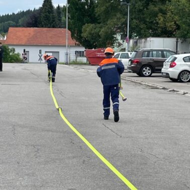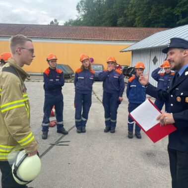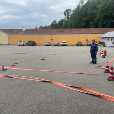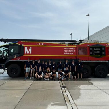 Ein aufregendes Wochenende liegt hinter der Jugendfeuerwehr Schongau. Das Wetter hat es fast etwas zu gut gemeint und so starteten wir bei heißen Temperaturen zum Flughafen München. Vor Ort hatten wir die Möglichkeit die Feuerwache Nord zu besichtigen und die beeindruckenden Spezialfahrzeuge wie den „Panther“ mit 52 Tonnen Gewicht, 1450 PS Fahrleistung und 12.500 Liter Wassertank aus nächster Nähe zu erkunden. Der Wasserstrahl aus dem Dachwerfer imponierte uns alle. Danach ging es mit dem Bus noch auf die Airport-Live-Tour, wo wir sämtliche Flugzeuge, wie auch den A380 aus nächster Nähe bestaunen konnten. Nach einem stärkenden Mittagessen ging es für die Jugendlichen weiter und wir konnten unsere Fähigkeiten bei 3D-Neongolf testen. Gegen späten Nachmittag sind wir dann wieder in Schongau angekommen und ließen den Tag ausklingen mit Grillen, EM-Spiel Public Viewing und Lagerfeuer mit Stockbrot. Am nächsten Morgen wurde es ernst und die Prüfung der Jugendflamme Stufe 1 und Stufe 2 stand auf dem Plan. Viel Können mussten die Jugendlichen unter Beweis stellen und so galt es verschiedene Knoten zu machen, eine Saugleitung zu kuppeln, Schlauchkegeln, Geräte erklären, einen Hindernisparcours zu durchlaufen, einen Notruf abzusetzen, eine Schlauchstrecke zu verlegen und eine Unfallstelle abzusichern. Alle Teilnehmer haben erfolgreich bestanden und ihr Abzeichen erhalten.