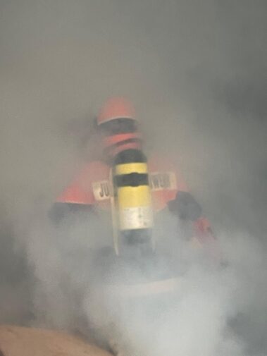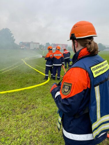 Der nächste Morgen begann schon früh. So wurden die Jungs und Mädels schon vor dem Frühstück zum nächsten Einsatz alarmiert. Ein gemeldeter eCall ohne Spracherwiderung stellte sich als Fehlalarm heraus. Kurz vor Ende der 24-Stunden-Schicht wurde es nochmal ernst. Die Alarmdurchsage lautete B4 Brand einer landwirtschaftlichen Scheune mit zwei Personen im Gebäude. Während der Personenrettung unter Atemschutz wurde bereits der Löschangriff vorbereitet und die Scheune gelöscht. So ging eine lange und einsatzreiche Schicht zu Ende. Alle waren zwar etwas müde, aber sehr zufrieden und begeistert von den Eindrücken der letzten 24 Stunden. Dieser Erfolg ist auch mit viel Aufwand verbunden und so möchten wir allen danken, die uns unterstützt haben, sowie allen die uns ein Plätzchen für einen Einsatz zur Verfügung gestellt haben.