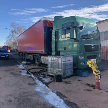 Die Feuerwehr Stadt Schongau wurde am 10.01.2020 um 11:24 Uhr zu auslaufenden Kraftstoff in die Burggener Straße gerufen. Vor Ort stellte sich heraus, dass ein LKW seinen Dieseltank seitlich aufgeschlitzt hatte. Die Einsatzstelle wurde abgesichert, der auslaufende Kraftstoff wurde aufgefangen und der im Tank befindliche Diesel abgepumpt. Nachdem der LKW abgeschleppt und die Einsatzstelle gereinigt wurde konnten die Einsatzkräfte zurück zum Standort fahren.