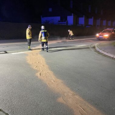 Zu einer Ölspur wurden wir in der Nacht um 03:51 Uhr in die Sonnenstraße gerufen. Dort lief aus einem PKW Öl auf die Straße. Der Fahrweg war gut zu erkennen. Er zog sich vom Hollberg über die Wilhelm-Köhler-Straße bis in die Sonnenstraße. Mit einer kleinen Manschaft reinigten wir die einzelnen stellen auf der Straße und nahmen das Öl mit Bindemittel auf.