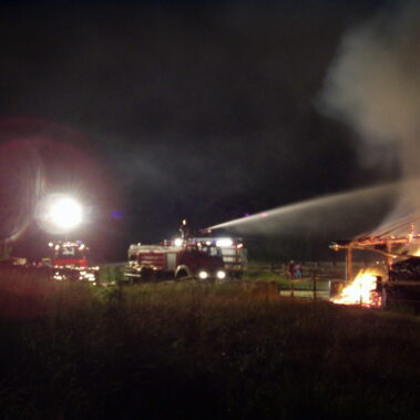 Am 07.07.2003 wurde die Feuerwehr Schongau gegen 23:04 Uhr zu einem Brand eines Stadels, hinter dem Gelände der ehemaligen Fa. Gnettner, alarmiert. Beim Eintreffen der Einsatzkräfte stand der Stadel bereits im Vollbrand. Ein Übergreifen der Flammen auf ein angrenzendes Gartenhaus konnte verhindert werden. Die Nachlöscharbeiten gestalteten sich aufgrund einer großen Menge Heu, welches in mühsamer Kleinarbeit abgelöscht werden mußte, sehr langwierig.