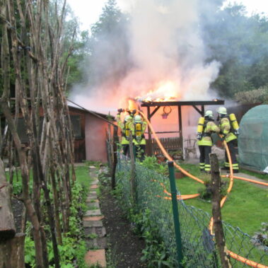Am 14.06.2020 wurde die Feuerwehr Stadt Schongau zu einem Brand einer Gartenhütte gerufen. Um 06:49 Uhr wurde die Feuerwehr alarmiert und startete wenige Minuten später mit der Brandbekämpfung. Nach dem Ablöschen wurde der Schuppen durch die Einsatzkräfte eingerissen und alle Glutnester abgelöscht.