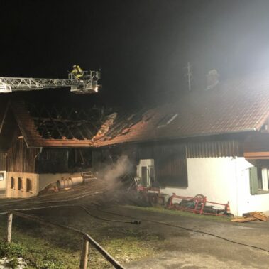 Am Nachmittag des 06.12.2019 wurde die Feuerwehr Stadt Schongau zu einem Brand eines landwirtschaftlichen Anwesens nach Tannenberg alarmiert. Vor Ort konnte der leerstehende Bauernhof mit Hilfe von Drehleitern und mehreren Feuerwehren gelöscht werden. Das Übergreifen auf das anliegende Wohngebäude konnte somit verhindert werden.