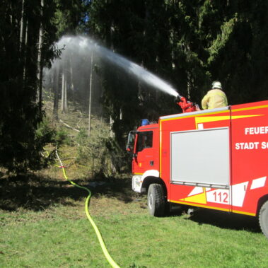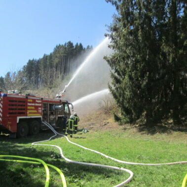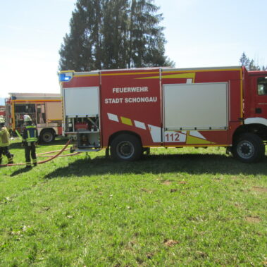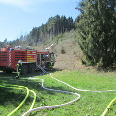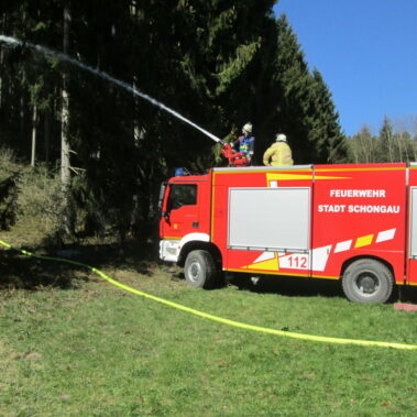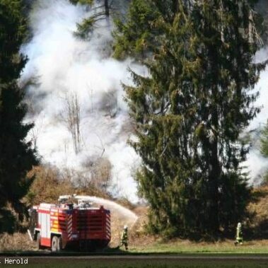 Vom Tower der Kaserne aus war es entdeckt worden, ein Feuer am Schellberg bei Altenstadt. Die Flugplatzfeuerwehr war zuerst vor Ort, die Feuerwehren aus Altenstadt, Schwabniederhofen, Schwabsoien, Schwabbruck, Herzogsägmühle und Schongau wurden ebenfalls alarmiert. Die alarmierten Löschfahrzeuge lieferten Wasser und fuhren Pendelverkehr, in Handarbeit wurden die Glutnester dann abgelöscht. Die Feuerwehren waren zwei Stunden im Einsatz; die Einsatzkräfte aus Schwabniederhofen waren noch länger mit der Kontrolle der Brandstelle beschäftigt.