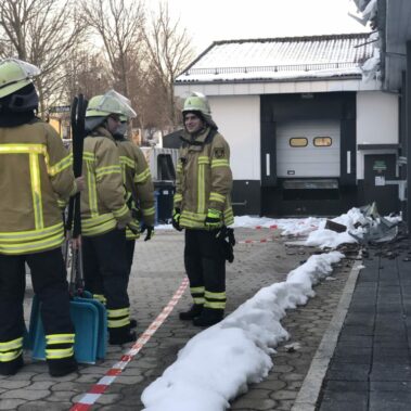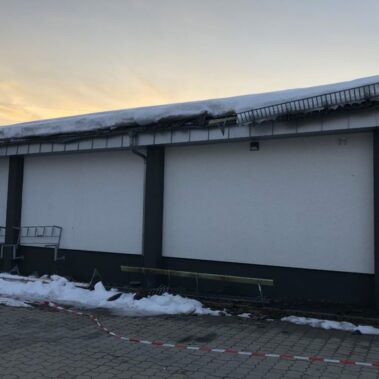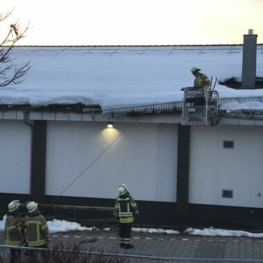Die Feuerwehr der Stadt Schongau wurde am 13.02.2019 um 17:05 Uhr zum ALDI am Lerchenfeld gerufen. Vor Ort drohten größere Eisplatten sowie Dachplatten und Schneeverbauung vom Dach zu stürzen. Die Eisplatten als auch die umliegende Schneefang wurden beseitigt und der Bereich großräumig abgesperrt.