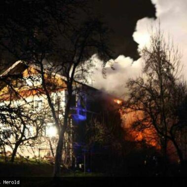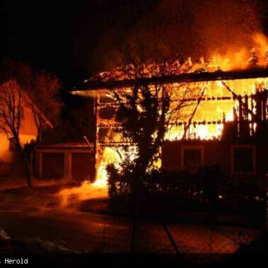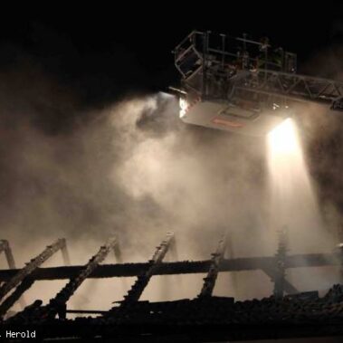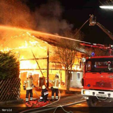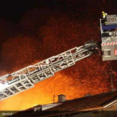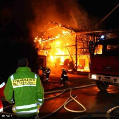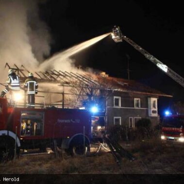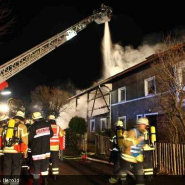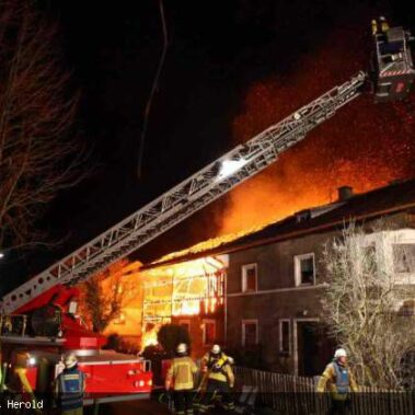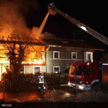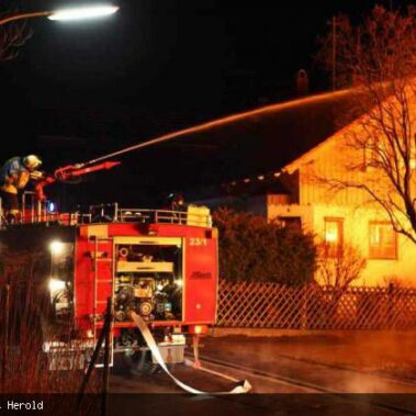Die Feuerwehr Stadt Schongau wurde am 12.03.2012 gegen 02:22 Uhr zu einem Dachstuhlbrand in die Perlachstraße in Schongau gerufen. Die ersten Einsatzkräfte am Feuerwehrgerätehaus konnten bereits auf Sicht den zunächst vermuteten Dachstuhlbrand in einen bestätigten Dachstuhl im Vollbrand“ erhöhen. Zeitgleich wurde die Alarmierung der Feuerwehr Peiting mit Drehleiter und einem Löschzug veranlasst. Beim Eintreffen der Feuerwehr brannte ein ehemaliges landwirtschaftliches Anwesen