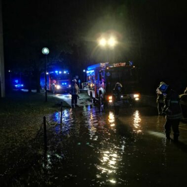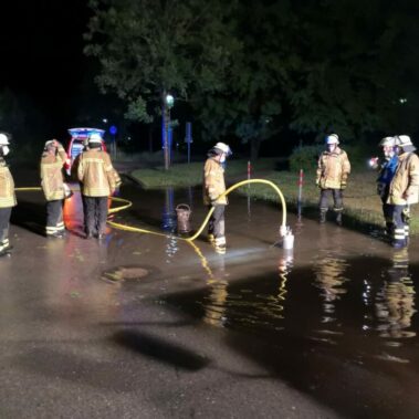 Einen weiteren Einsatz hatte die Feuerwehr der Stadt Schongau in der Maria-Eberth-Straße. Dort drohte ein Keller durch den Starkregen voll zu laufen. Es wurden einige Sandsäcke vor dem Keller plaziert und die umliegenden Gulli frei geräumt. Anschließend konnte die Feuerwehr der Stadt Schongau zurück zum Gerätehaus fahren.