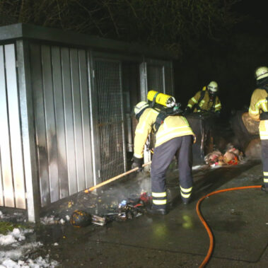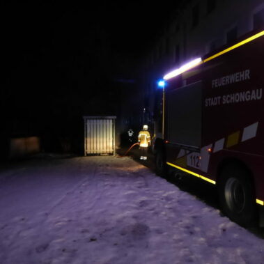 Die Feuerwehr Stadt Schongau wurde am 02.02.2016 um 04:47 Uhr zu einem Mülltonnenbrand in die Wilhelm-Köhler-Straße gerufen. Das Feuer wurde mithilfe des Schnellangriffs unseres Großtankers und unter Atemschutz gelöscht. Im Anschluss wurde die Einsatzstelle mit der Wärmebildkamera kontrolliert