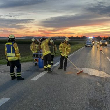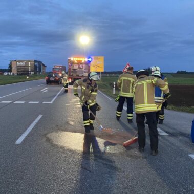 Zu einem Verkehrsunfall auf der B472 im Ortsgebiet Schongau kam es in der Früh um ca. 6 Uhr. Hierauf wurde die Freiwillige Feuerwehr der Stadt Schongau durch die Polizei hinzugerufen. Vor Ort wurde die Einsatzstelle abgesichert und der Verkehr geregelt. Nachdem die beteiligten Autos von der B472 gebracht wurden, konnte die Fahrbahn von auslaufenden Betriebsstoffen gereinigt werden. Nach kurzer Zeit konnte die Feuerwehr der Stadt Schongau zurück zu ihrem Standort fahren.