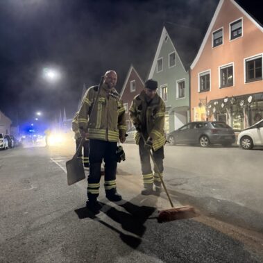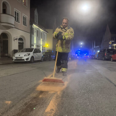Die Feuerwehr der Stadt Schongau wurde nach dem Einsatz WASSERNOT in die Altstadt gerufen. Dort war eine größere Ölspur gemeldet worden, die sich durch mehrere Straße zog. Die Ölspur wurde mittels Bindemittel beseitigt.