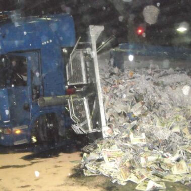 Die Werkfeuerwehr UPM, das THW Schongau, sowie die Feuerwehr Stadt Schongau wurden am 20.06.2012 gegen 20:44 Uhr auf das Werksgelände der Firma UPM-Kymene in Schongau gerufen. Ein LKW, der Altpapier geladen hatte, war beim Abladen auf die Seite gekippt. Betriebsstoffe liefen aus, das Fahrzeug musste gesichert und der LKW aufgerichtet und aus der Abladehalle geschafft werden, bevor früh morgens der Betrieb erneut anläuft. Die Feuerwehren arbeiteten gemeinsam mit dem THW Hand in Hand und waren jeweils 7 Stunden im Einsatz.