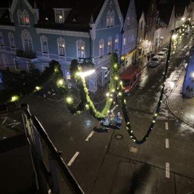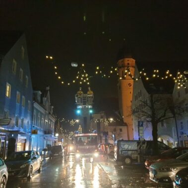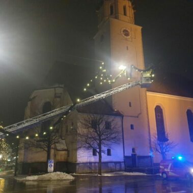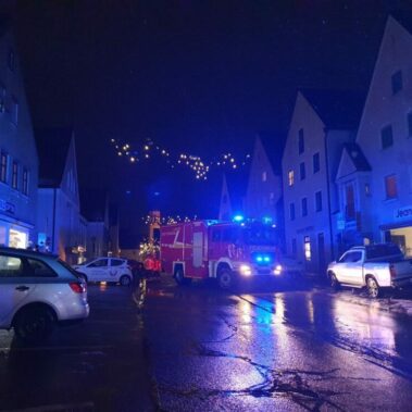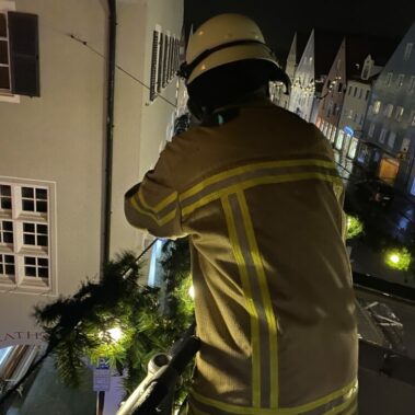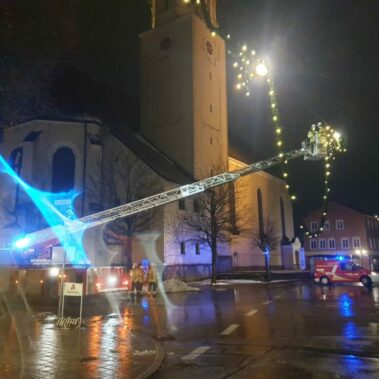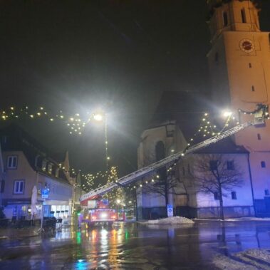 Am 30.11.2021 um 20:02 Uhr wurde die Feuerwehr Stadt Schongau zu einem Unwettereinsatz gerufen. In der Altstadt hatten sich Lichterketten durch den starken Wind gelöst und drohten zu fallen. Mithilfe der Drehleiter konnten alle losen Teile wieder befestigt werden. Mit den anderen Fahrzeugen wurden die betroffenen Straßen kurzzeitig gesperrt.