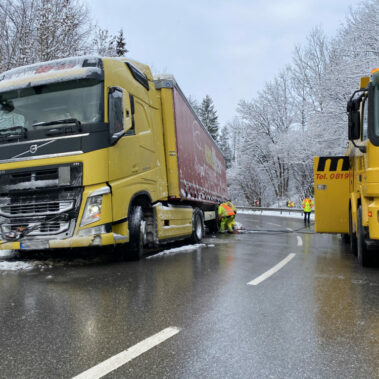 Die Feuerwehr der Stadt Schongau wurde zu einer Verkehrslenkung in die Augsburger Straße (Krankenhausberg) gerufen. Dort hatte sich aufgrund glatter Fahrbahn ein LKW an einer Leitplanke festgefahren. Die Einsatzstelle wurde abgesichert und ein Abschleppunternehmen bestellt. Wärend dessen wurde der Verkehr wechselseitig an der Einsatzstelle vorbeigeführt. Der LKW (40 Tonner) war voll beladen und konnte durch das Abschleppunternehmen und der Seilwinde des RW2 vom Fahrbahnrand zurück auf die Fahrbahn gezogen werden.