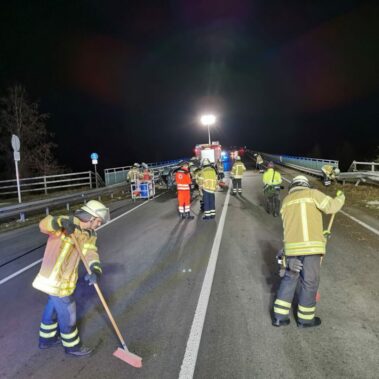 Zu einem Verkehrsunfall wurden wir am 14.02.2023 an die Lechtalbrücke gerufen. Vor Ort stellte sich heraus, dass ein PKW von der Straße abkam und mit dem Heck gegen eine Leitplanke schleuderte. Das Fahrzeug blieb auf der Gegenfahrbahn liegen. Der Fahrer wurde bereits aus dem Fahrzeug befreit und vom Rettungsdienst versorgt. Weitere Personen kamen bei diesem Einsatz nicht zu Schaden. Wir sperrten die Straße und sicherten die Einsatzstelle. Auslaufende Betriebsstoffe wurden mit Bindemittel aufgenommen. Nachdem das Fahrzeug abgeschleppt und die Straße gereinigt war, konnten die Kräfte von Florian Schongau zurück zu ihrem Standort fahren.