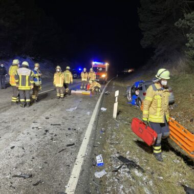 Am 27.12.2020 um 17:52 Uhr wurde die Feuerwehr Stadt Schongau zu einem Verkehrsunfall auf der B17 gerufen. Zwischen den Abfahrten Altenstadt und Schongauer Krankenhaus waren 2 PKWs frontal kollidiert. Die Feuerwehr befreite einen Fahrzeuginsassen und sperrte die Bundesstraße zeitweise komplett. Die beteiligten Personen wurden mit dem Rettungsdienst in die nächsten Krankenhäuser gebracht. Nach dem Reinigen der Straße und dem Abschleppen der PKWs konnte die Straße wieder freigegeben werden.
