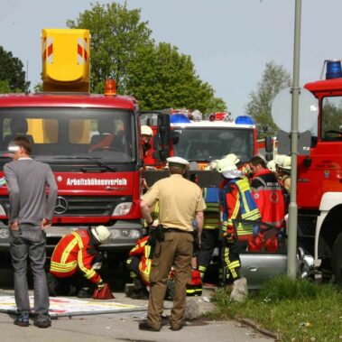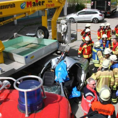 Die Feuerwehren Altenstadt und Schongau wurden am 11.05.2016 um 10:07 zu einem schweren Verkehrsunfall in die Schongauer Straße nach Altenstadt gerufen. Ein PKW war aus ungeklärter Ursache in eine stehende Hubarbeitsbühne gefahren. Eine der vier im PKW sitzenden Personen wurde dabei schwer eingeklemmt. Die Feuerwehren Altenstadt und Schongau befreiten die Person mit Hilfe mehrerer hydraulischer Rettungsgeräte. Der Rettungsdienst versorgte die insgesamt 4 verletzten Personen, 2 davon wurden mit Rettungshubschraubern in die umliegenden Krankenhäuser eingeliefert.