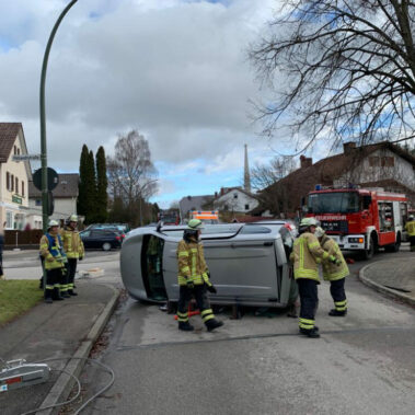 Die Feuerwehr Stadt Schongau wurde zu einem Verkehrsunfall mit eingeklemmter Person alarmiert. Vor Ort stellte sich heraus, dass keine Person im Fahrzeug eingeklemmt war. Die Person konnte sich selbständig aus dem PKW, der auf der Seite lag, befreien. Die Einsatzstelle wurde gesichert und auslaufende Betriebsstoffe gebunden.
