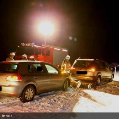 Die Feuerwehren Hohenfurch und Stadt Schongau wurden am 11.01.2015 gegen 18:31 Uhr zu einem Verkehrsunfall mit mehreren PKWs gerufen; auf der Bundesstraße B 17 von Schongau nach Landsberg war es kurz hinter Hohenfurch auf spiegelglatter Fahrbahn zu einem Unfall gekommen. Glücklicherweise wurde niemand verletzt. Die Feuerwehren sperrten die Straße, regelten den Verkehr und unterstützten die Polizei.