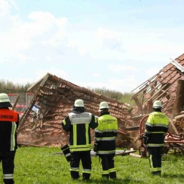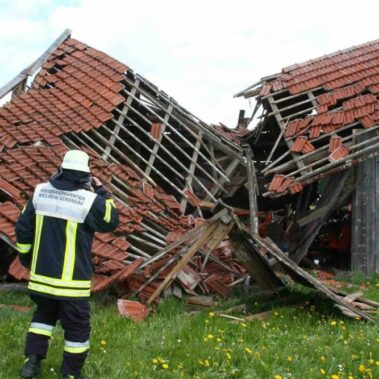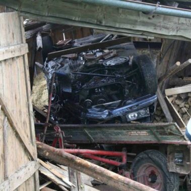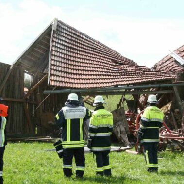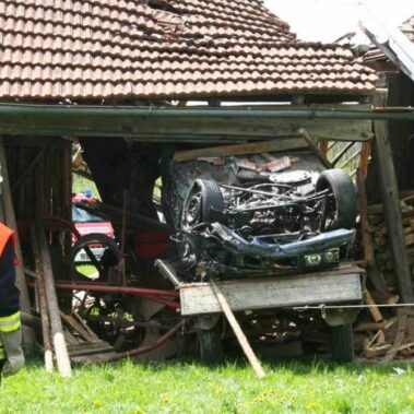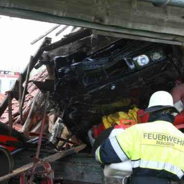Die Feuerwehr Schongau wurde am 30.04.2015 gegen 12:25 Uhr zur Unterstützung der Feuerwehren Ingenried und Burggen zu einem Verkehrsunfall auf die Kreisstraße WM 3 bei Erbenschwang gerufen. Dort war ein PKW von der Straße abgekommen und in einen Stadl gefahren.