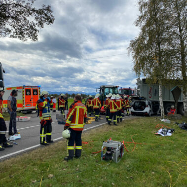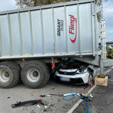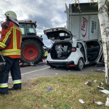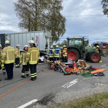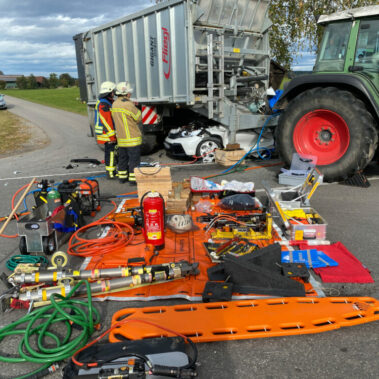 Zu einem Verkehrsunfall mit eingeklemmter Person wurde die Feuerwehr der Stadt Schongau zusammen mit der Feuerwehr Altenstadt alarmiert. Vor Ort kümmerten wir uns gemeinsam mit dem Rettungsdienst um eine schnelle Befreiung der Person aus dem Unfallfahrzeug. Nachdem ein Zugang mittels Spreizer und Schneidegerät geschaffen wurde, konnte der Patient durch das Fahrzeugheck auf einem Spineboard befreit werden. Die Triebstraße bei Altenstadt wurde komplett gesperrt. Nachdem der PKW unter dem Anhänger herausgezogen wurde, die Betriebsmittel gebunden waren und die Unfallstelle gereinigt wurde, konnte die Feuerwehr der Stadt Schongau zurück zu ihrem Standort fahren.