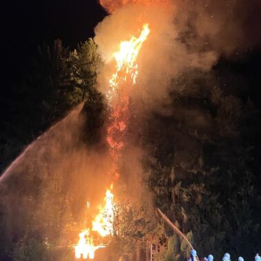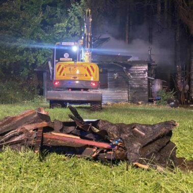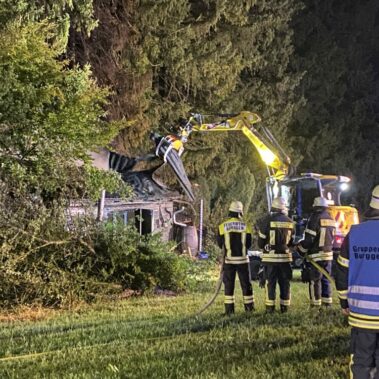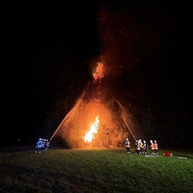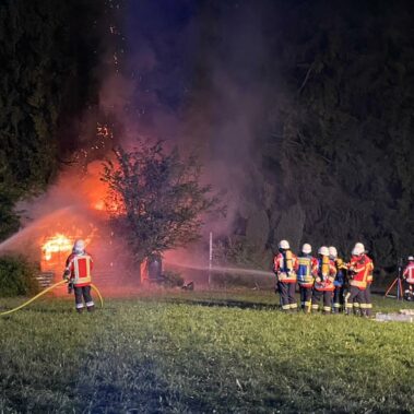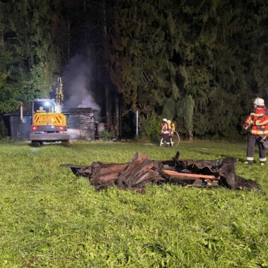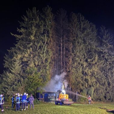 Zu einem Waldbrand, klein, wurden wir in der Nacht zum Dienstag alarmiert. Es handelte sich abermals um eine Jägerhütte die in eine Waldstück nahe Burggen stand. Zur Sicherung der Wasserversorgung wurden all unsere Wasserführenden Fahrzeuge der Feuerwehr Schongau im Pendelverkehr eingesetzt. Die Löscharbeiten dauerten mehrere Stunden. Auch ein Bagger wurde zur Einsatzstelle beordert um die Jägerhütte abzureissen, damit man alle Glutnester beseitigen konnte.