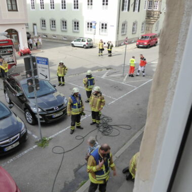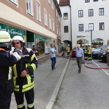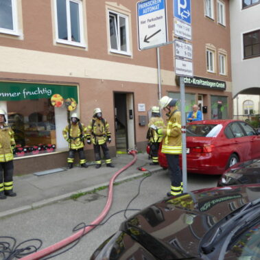 Die Feuerwehr Stadt Schongau wurde am 16.06.2017 um 17:01 Uhr zu einem Wohnhausbrand in die Weinstraße in die Schongauer Altstadt gerufen. Aufgrund der starken Rauchentwicklung aus dem Fenster brach die Feuerwehr die Wohnungstür auf. Zum Glück stellte sich nach dem Öffnen der betreffenden Wohnung heraus, dass es sich um angebranntes Essen handelte. Die Wohnung wurde belüftet und anschließend dem Eigentümer übergeben.