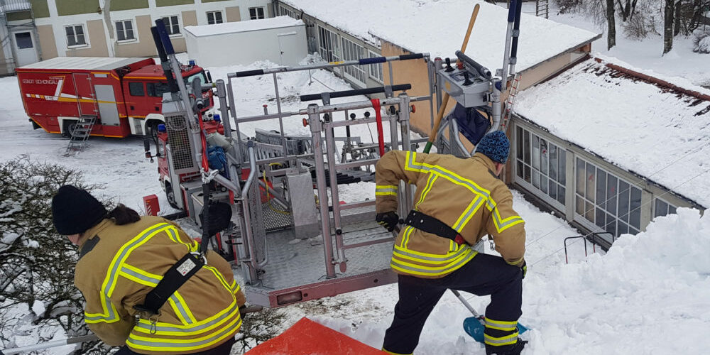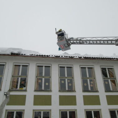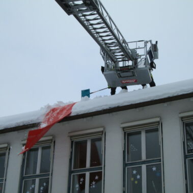 Am Freitag ging es dann um 14:00 Uhr für 20 Mann los. Sie begannen auf der städtischen Grundschule damit das Dach von der Schneelast zu befreien um weitere Gefahren für das Gebäude abzuwenden.
