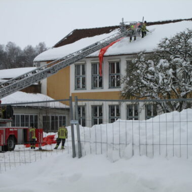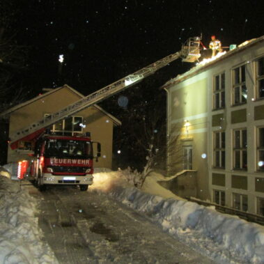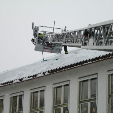 Gegen 13:00 Uhr erreichten uns zwei weitere Einsätze. Wiederum waren Schneemassen zu beseitigen. In der Bernbeurener Straße galt es zwei Dächer von der Schneelast zu befreien und einer möglichen Einsturzgefahr entgegen zu wirken. Die Maßnahmen an der Grundschule liefen hierzu parallel weiter.
