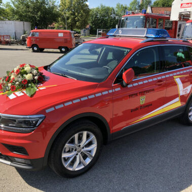 Zur Fahrzeugweihe unseres neuen Führungsfahrzeuges dem KdoW sind am 04. Juli 2020 unsere Kameraden zusammen mit der Stadt Schongau und deren Stadträten eingeladen worden. Im Freihen an unserer Feuerwehr wurden alle Vorbereitungen getroffen damit bei schönstem Wetter die Fahrzeugweihe stattfinden konnte. Umrahmt wurde das neue Fahrzeug von unseren Löschfahrzeugen die im Hintergrund standen. Ebenfalls wurde der neue Schaumtrainer eingeweiht der von der Versicherungskammer Bayern gespendet wurde. Der zugehörige Anhänger hingegen wurde von verschiedenen Sponsoren (KFV, Versicherungskammer Bayern, OSS Penzberg, SI-MD Weilheim, Autohaus Resch Peiting, Lackiererei Keller Bernbeuren, Weinhandelpfalz Schongau) gespendet. Fast alle aktiven Feuerwehrfreuen und Männer nahmen an der zeremonie Teil. Bei strahlendem Sonnenschein zu diesem feierlichen Anlass spendierte der Verein auch noch ein kleines Essen nach der Weihe. Viel spaß mit dem neuen Fahrzeug und unfallfreie Fahrt.