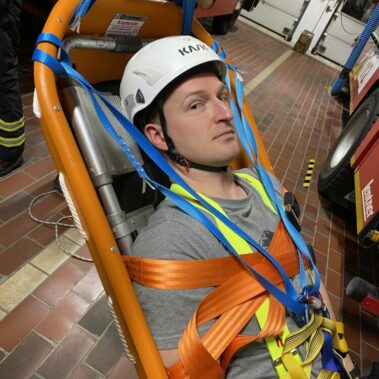 Die Feuerwehr Schongau führte kürzlich eine Übung zum Thema Absturzsicherung durch. Dabei lag der Fokus auf dem senkrechten Retten von Personen mittels Schleifkorbtrage und der Schaffung von Redundanz.