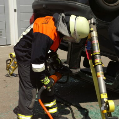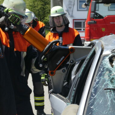 An Pfingstsamstag fand zusammen mit der Feuerwehr Denklingen eine Schulung auf den neuen Rettungsgeräten statt. An drei Stationen wurden verschiedene Unfallszenarien beübt. Ein Frontalzusammenstoß ermöglicht andere Rettungswege wie ein PKW in der Seitenlage oder in Dachlage. Hierbei stand immer die Patientenschonende und dennoch schnelle Rettung im Vordergrund.