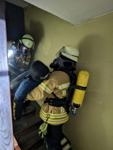 Dieses Mal war es eine Einsatzübung. Neben Theorie-Übungen und sogenannten Belastungsübungen, bei denen die sportliche Fitness unter Beweis gestellt wird, ist so eine realitätsnahe Übung großer Bestandteil für die Truppe des Atemschutzes.